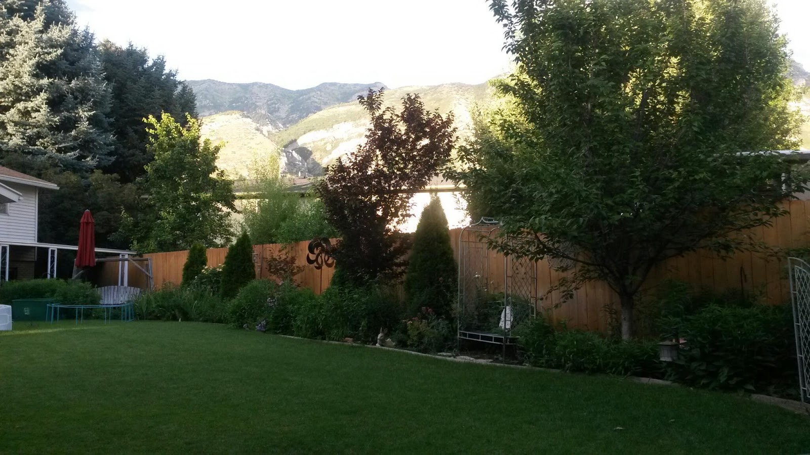 From our corner in the back yard. Taking a respite from installing a new hose and disturbing a hornet's nest.
